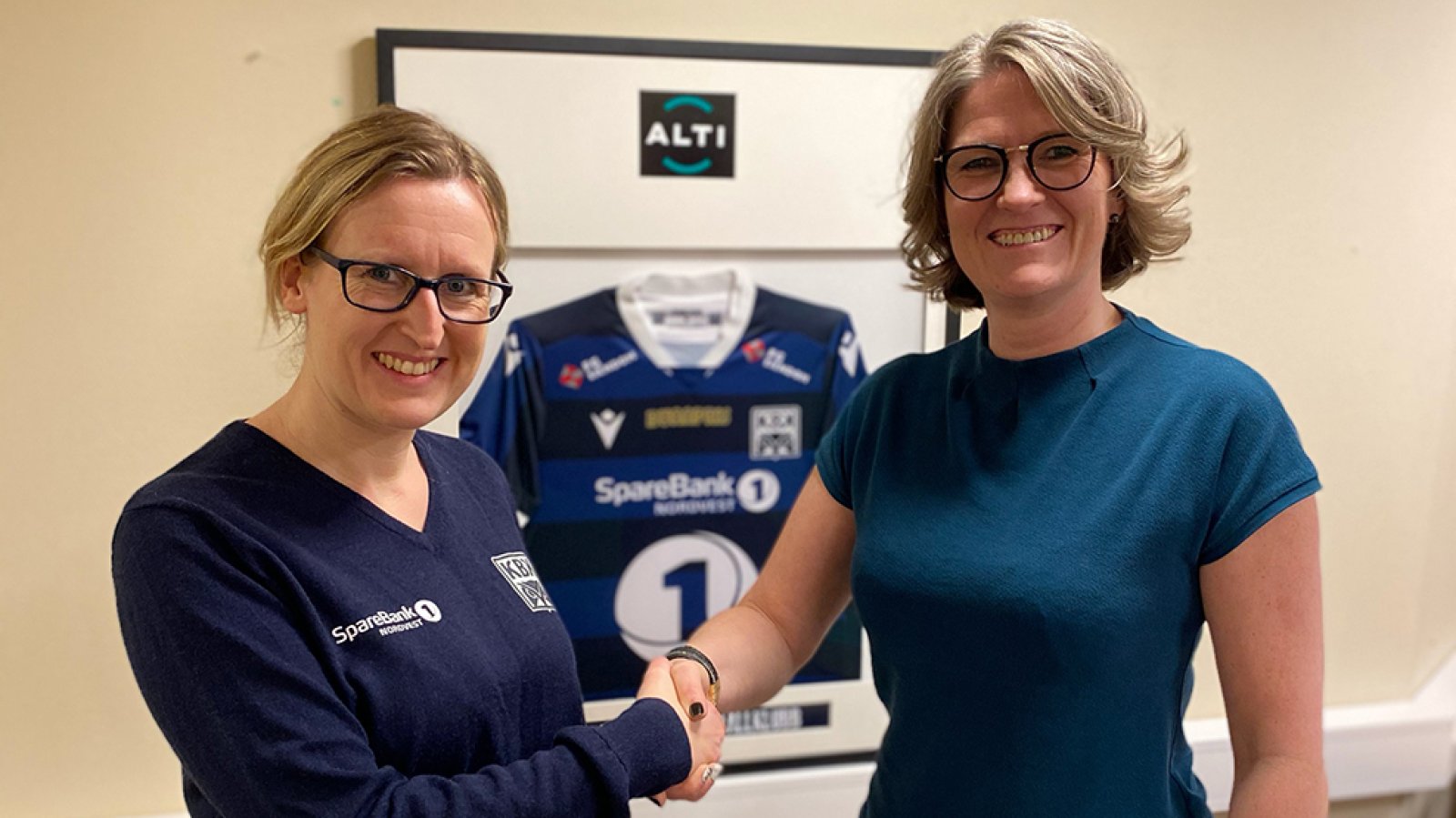 "Damene fortjener det samme", sier Helene - og vi sier oss enig! Første signering av draktsponorene er på plass, vi takker og bukker og gleder oss veldig av å ha med Alti på laget!