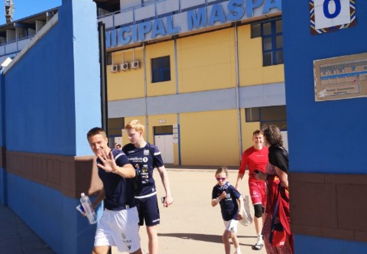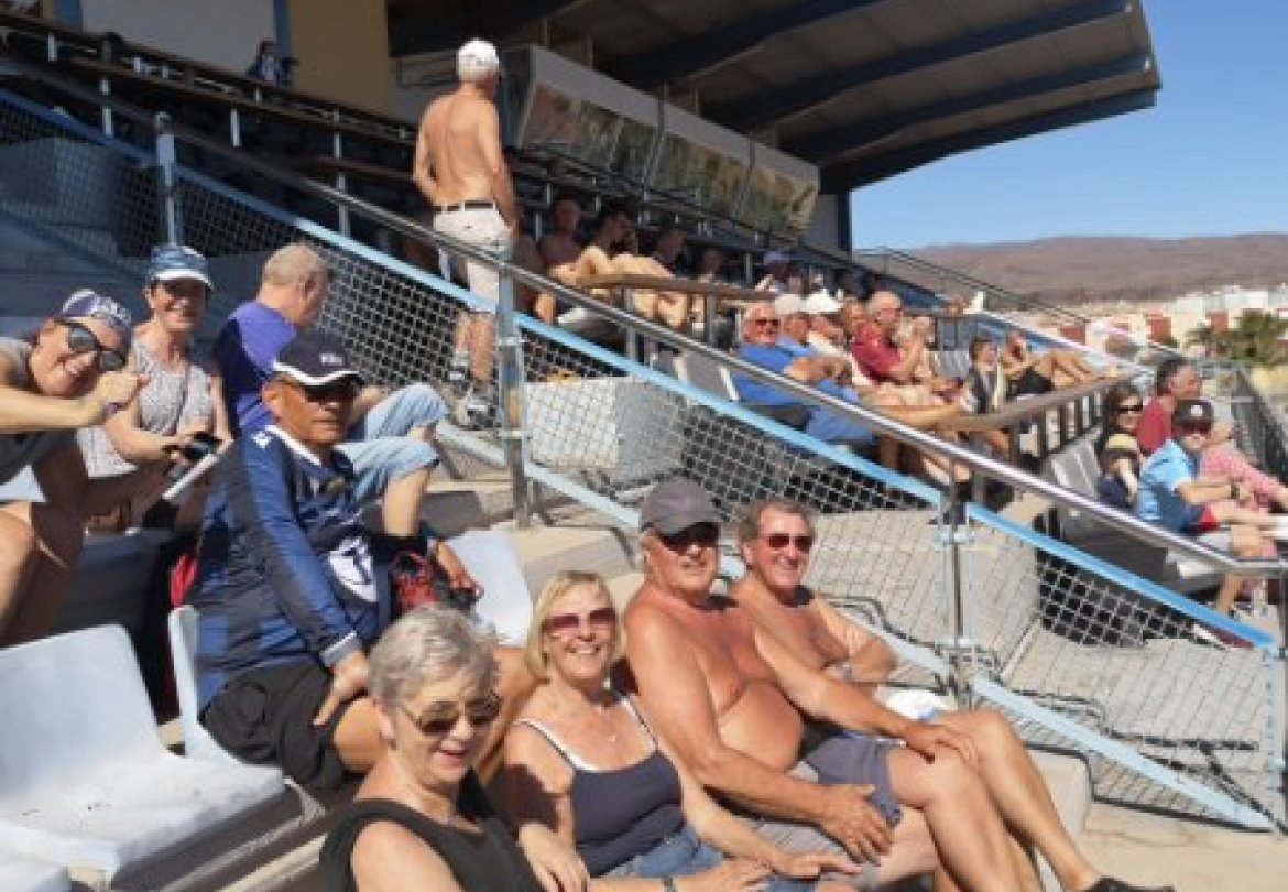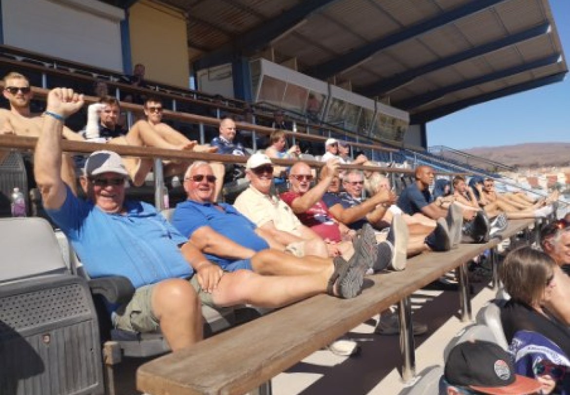 På den solfylte tribunen satt omkring 30 ivrige og enstusiastiske KBK-supportere. Blant disse var Hildegunn Orholm og Per Ola Harstad fra Kristiansund. De er begge ivrige supportere på hjemmebane, men denne gangen var de på plass også på Maspalomas Stadion.