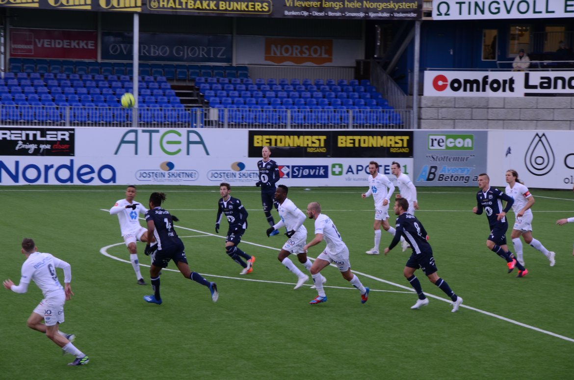 Etter vel 4 minutter ble Liridon Kalludra felt på hjørnet av 16-meteren. Liri tok selv frisparket og fant en umarkert Aliou Coly på bakerste stolpe. Han stupheadet ballen bak Moldes keeper Andreas Linde og 1-0 til KBK.