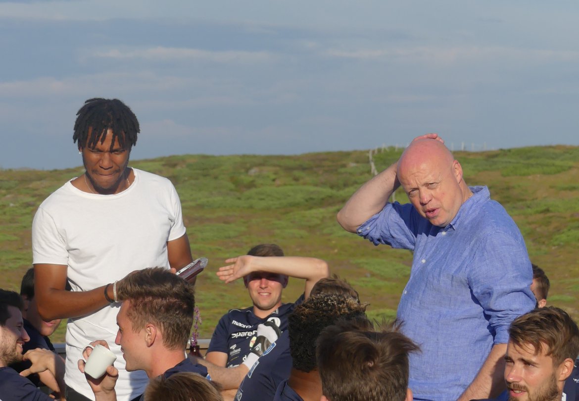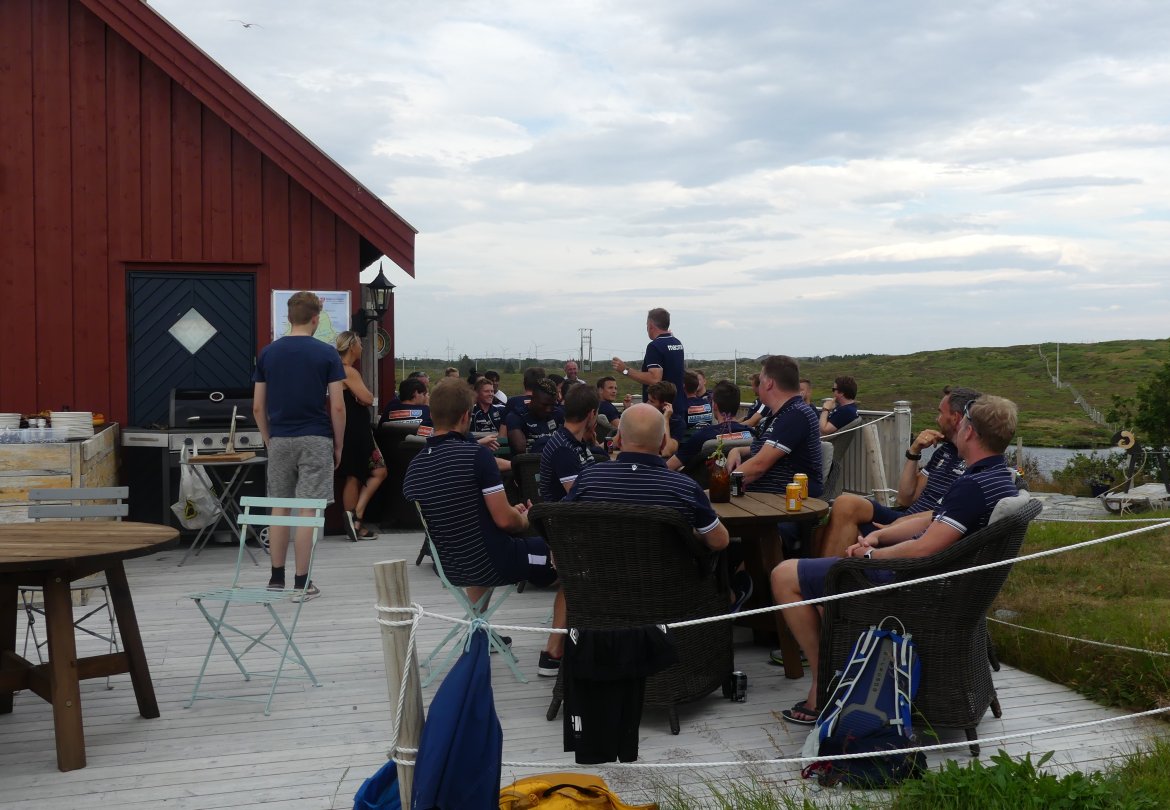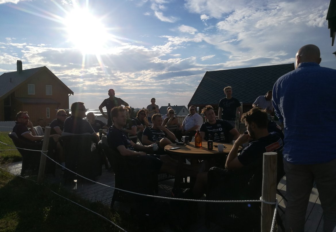 Etter to vel gjennomførte treningsøkter på Aure og Smøla, samlet hele laget seg hos Villsaubutikken Landhandel og Kafé på Smøla, nærmere bestemt Steinsøyneset, hvor Jan-Erik Larsen og Hanne Kruse Larsen sto med åpne armer og ønsket et sultent følge på cirka 35 personer velkommen. Helt fantastisk!