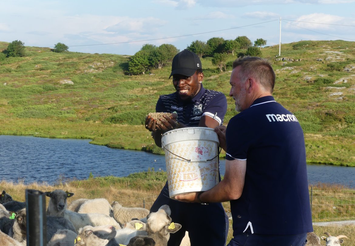 Et av høydepunktene var kanskje når Dao Bamba hoppet over gjerdet sammen med Jan-Erik Larsen for å mate villsauene som gikk på beite like ved landstedet. (PS: Bilde av seansen kan du se nederst i artikkelen.)