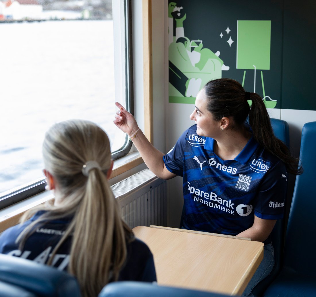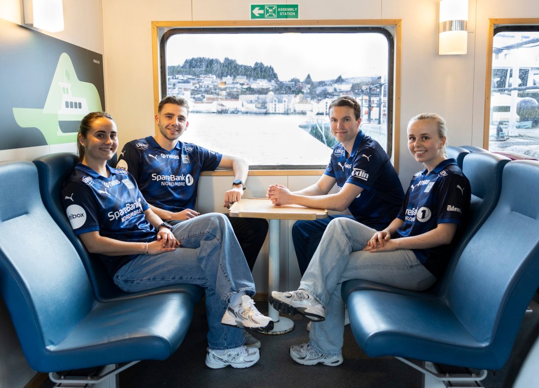 KBK-spillerne Jesper Strand Isaksen, Niklas Ødegård, Anna Strømsvåg og Julie Belden Rasmussen ble de første som fikk ta på seg den nye hjemmedrakta. På Sundbåten møtte de mange reisende som fikk en sniktitt på trøya KBK skal bruke i Eliteserien og fylkesserien i år.