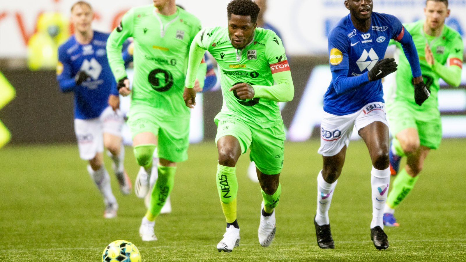 Molde har ballen og mest av spillet, men KBK kommer på noen farlige overganger. Kampen bølger herlig frem og tilbake ut første omgang.