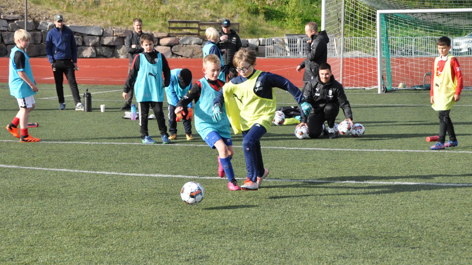 Spillet er i full gang når trenerne ankommer fotballbanen i Tingvollvågen. Ute på kunstgresset løper det allerede mange barn i fotballdrakter.