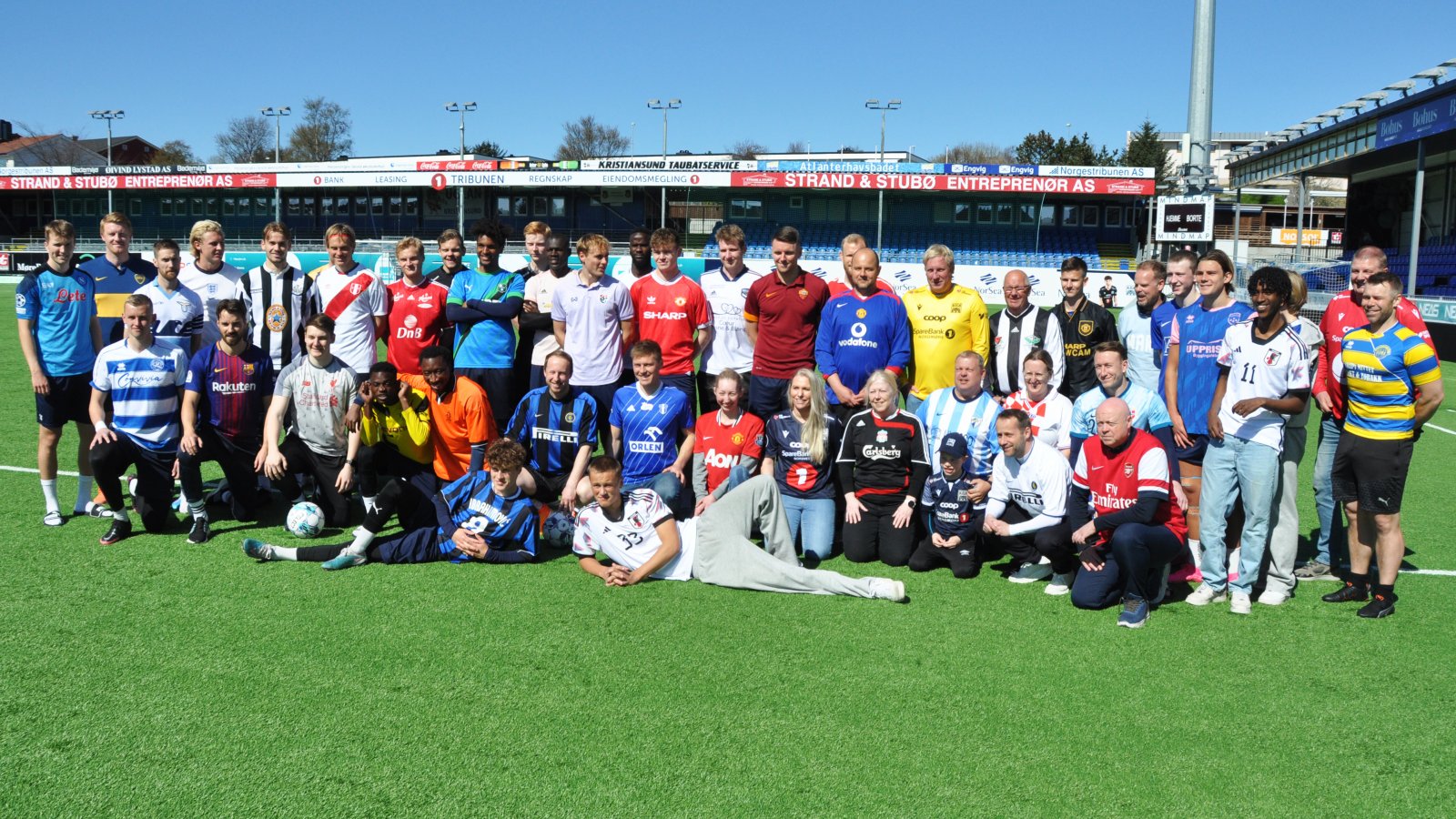 Vanligvis er det blå drakter og KBK-logo som gjelder, men fredag stilte spillere, trenere og ansatte i Kristiansund Ballklubb opp i mange ulike fotballtrøyer.