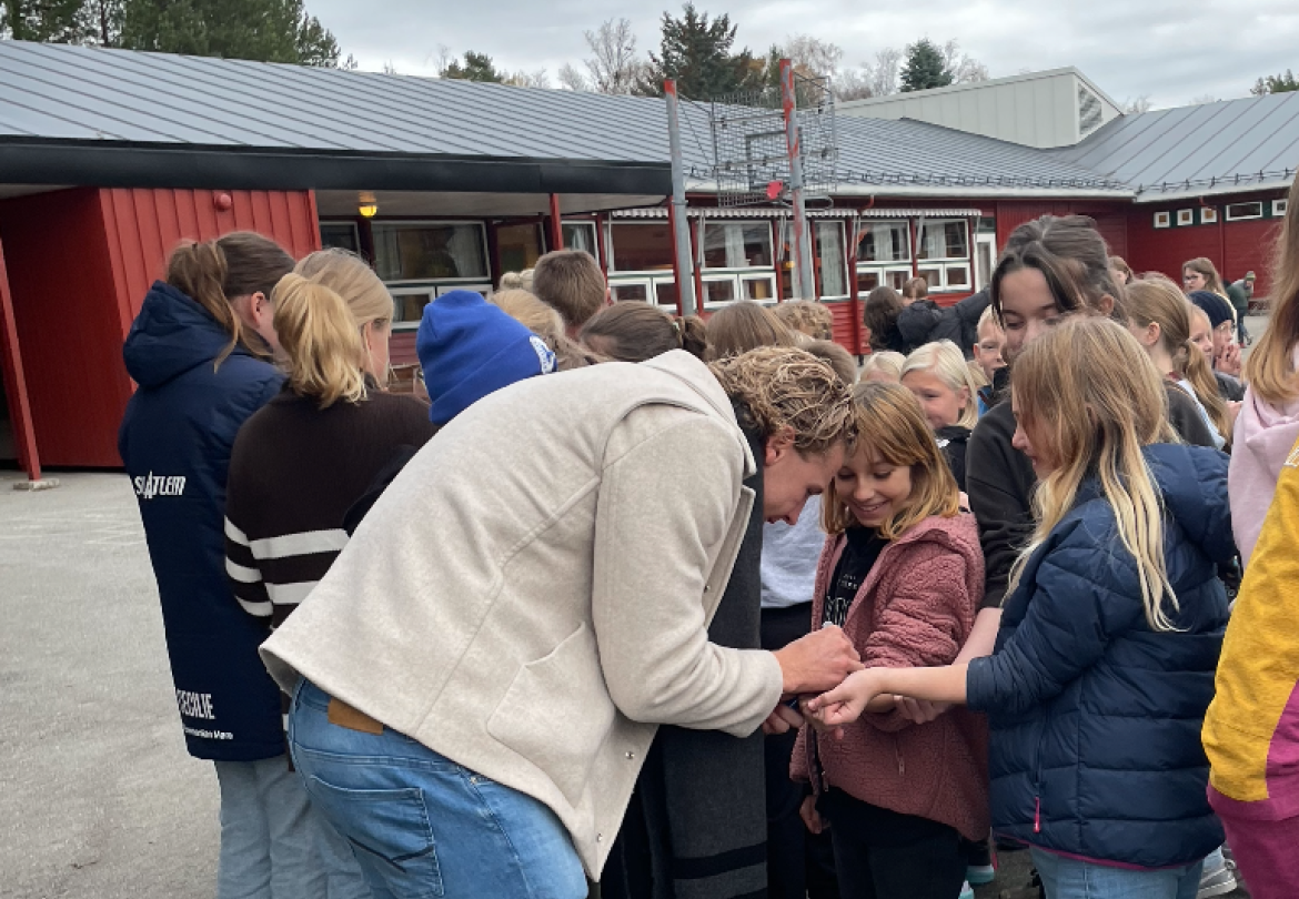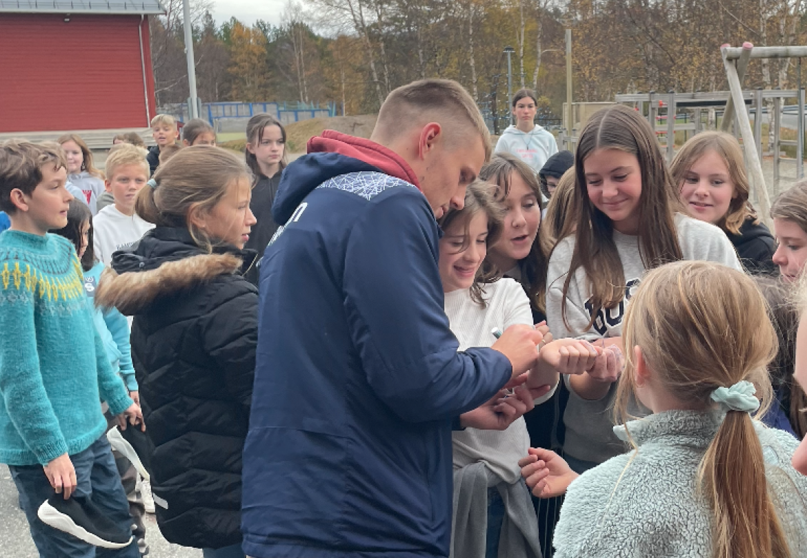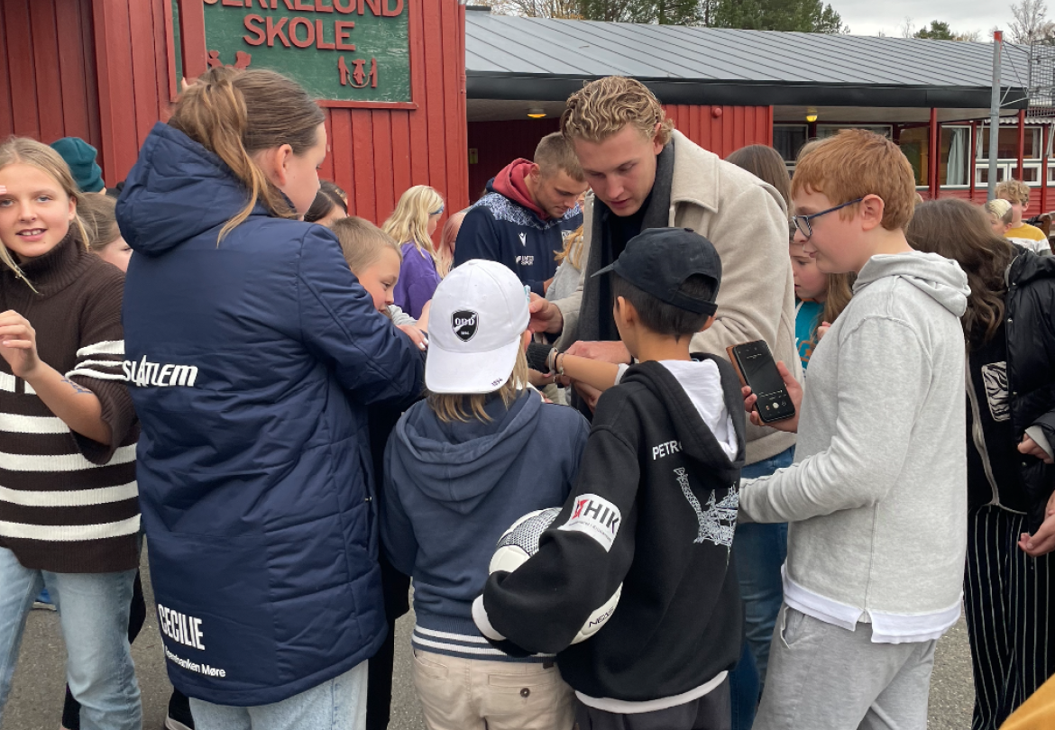 Mottakelsen var formidabel på alle ni skolene med jubelrop, sang og fotballprat. Spillerne delte villig ut signaturer, selfies, klemmer og noen små pasninger i fotballbingene. Det ble en ekstra spesiell dag for spillerne som fikk besøke sine gamle barneskoler.