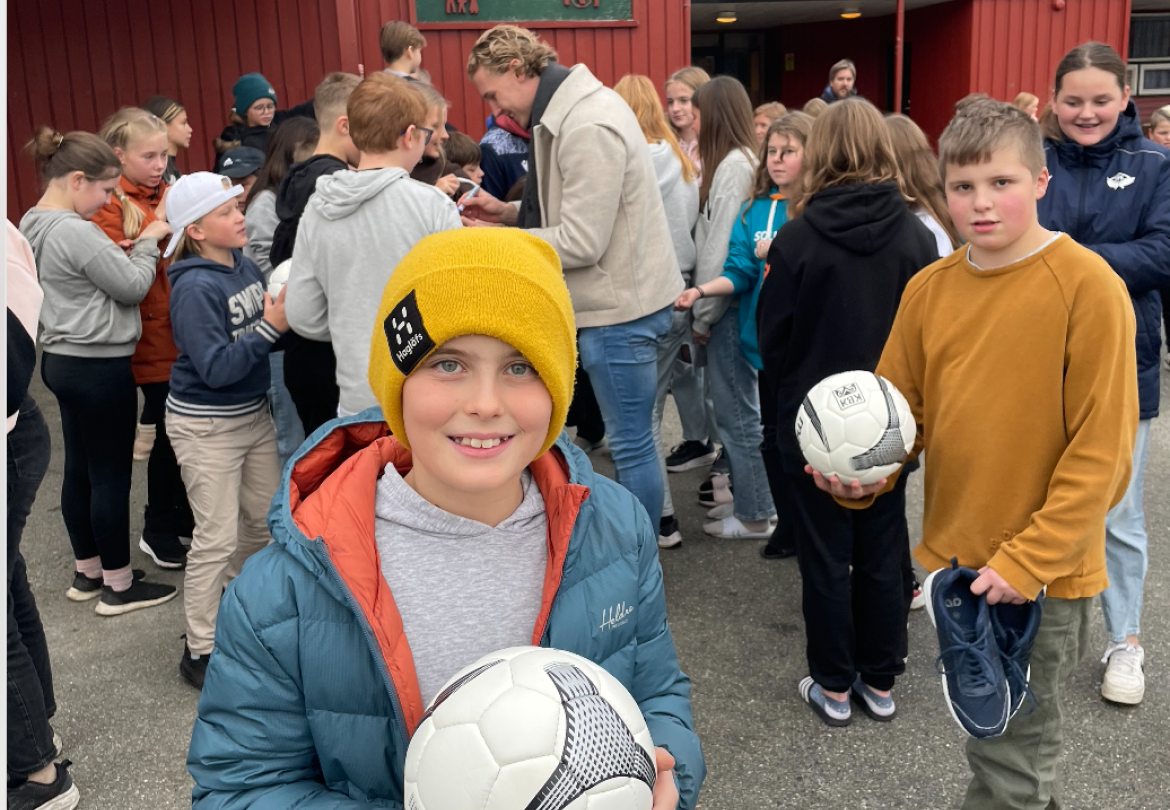 - Vi setter enormt stor pris all den støtten dere har gitt oss, derfor fortjener dere en gave tilbake fra oss i KBK og vår gode samarbeidspartner Neas. Vi håper dere vil få mye glede av klasseballene. Dessuten håper vi dere alle kommer og støtter oss de siste viktige kampene på Kristiansund stadion, sier Christoffer Aasbak og Bendik Brevik til elevene på Frei skole.