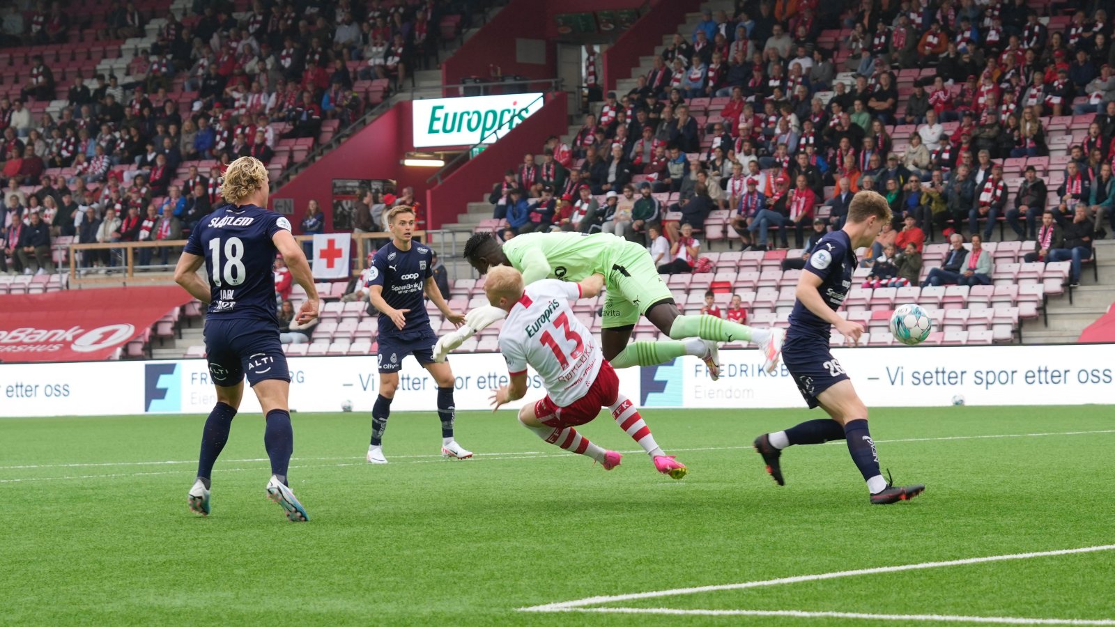 Det sto 1-1 til pause. Fredrikstad startet også best i andre omgang, og etter 50 minutter vartet Mbaye opp med en kjemperedning for å hindre scoring. Men fem minutter senere sto det 2-1 til hjemmelaget. Et innlegg fra venstre ble headet inn mot femmeteren, og der sto Oscar Aga og headet inn FFKs ledermål.