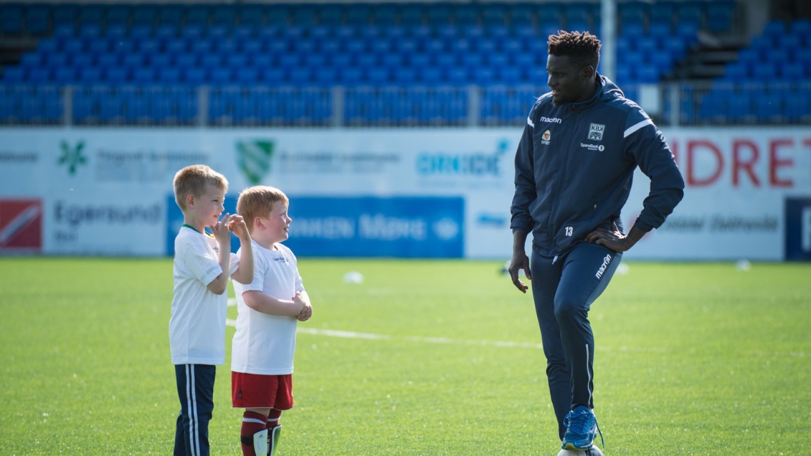 FOTO: Coly inspirerer og instruerer unge lovende fotballspillere. Hentet fra arkivet og en tidligere fotballskole.