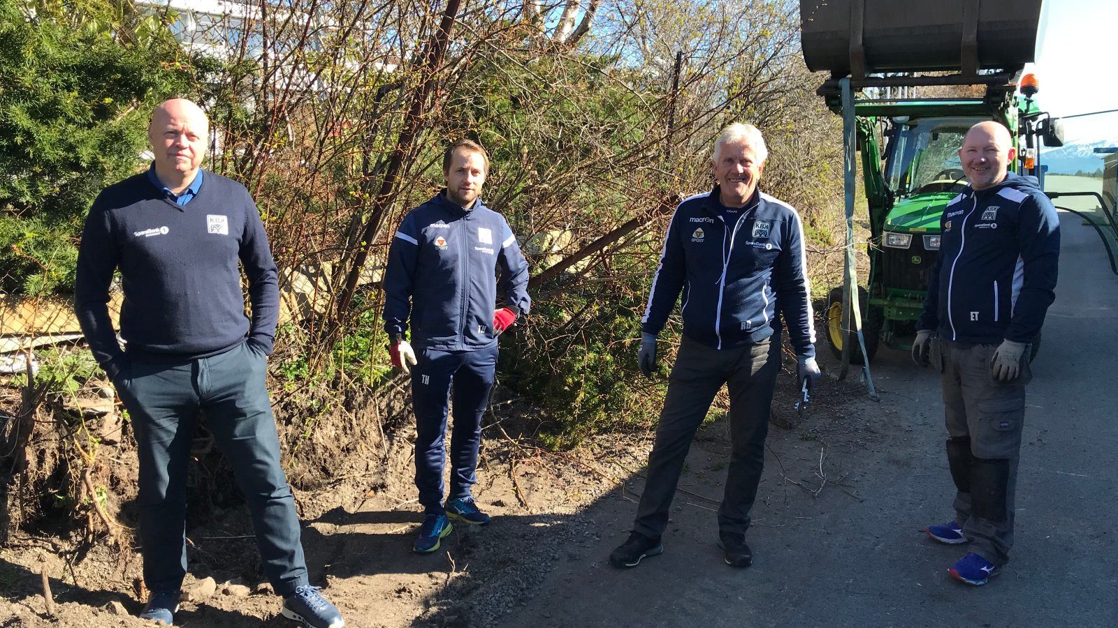 Driftssjef Truls Helland og hans gode medhjelpere Roger Bjerkelund og Edvin Torkildsen er i full gang med å rydde og klargjøre for bygging av den nye leveggen som vil bestå av betongsteiner fra Averøy Betong og treverk fra Talgø.