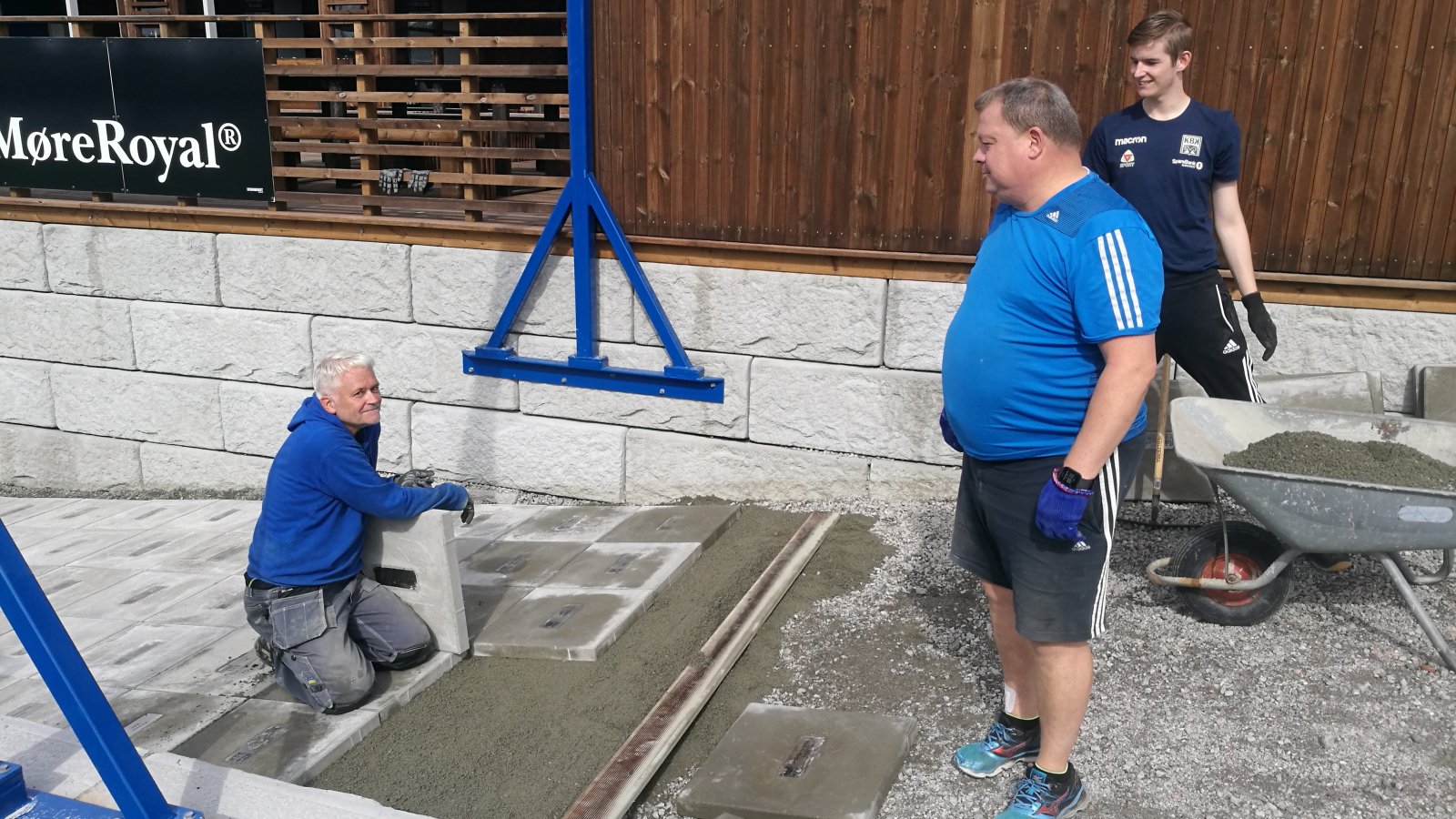 Våre frivillige og knakende flinke arbeidskarer på stadion er godt i gang med å legge ned den siste runden med heller på stadion.