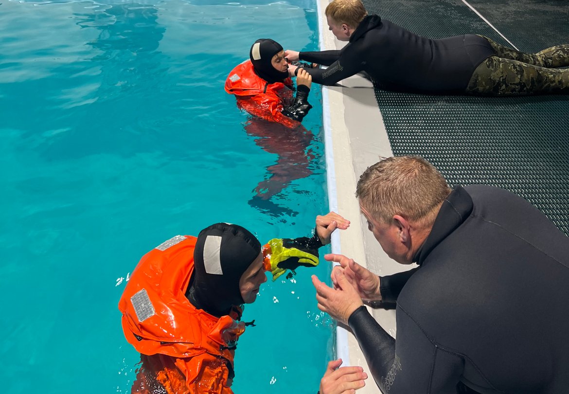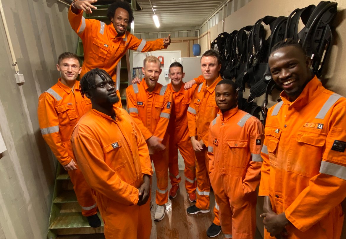Siste lag ut er de eldste og erfarne: Aliou, Liridon, Amin, Dan Peter, Bendik, Andreas og Mido i tillegg til superdykker David.