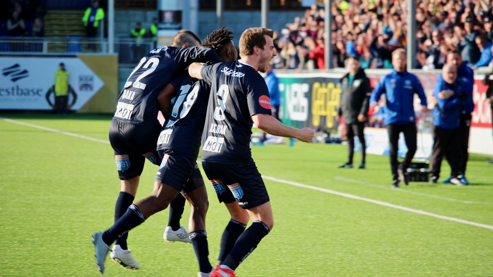 Og for et comeback det skal vise seg å bli. Mindre enn ett minutt etter byttet slår Jonas Rønningen en perfekt pasning i bakrom til Bamba, som gjør ingen feil alene med keeper. Plasserer ballen iskaldt mellom beina til Godsets keeper, og igjen er Kristiansund stadion i fyr og flamme. Bamba tar et 100 meters løp for å feire borte ved Uglan - han har nok ventet lenge på å kunne gi de dette øyeblikket!