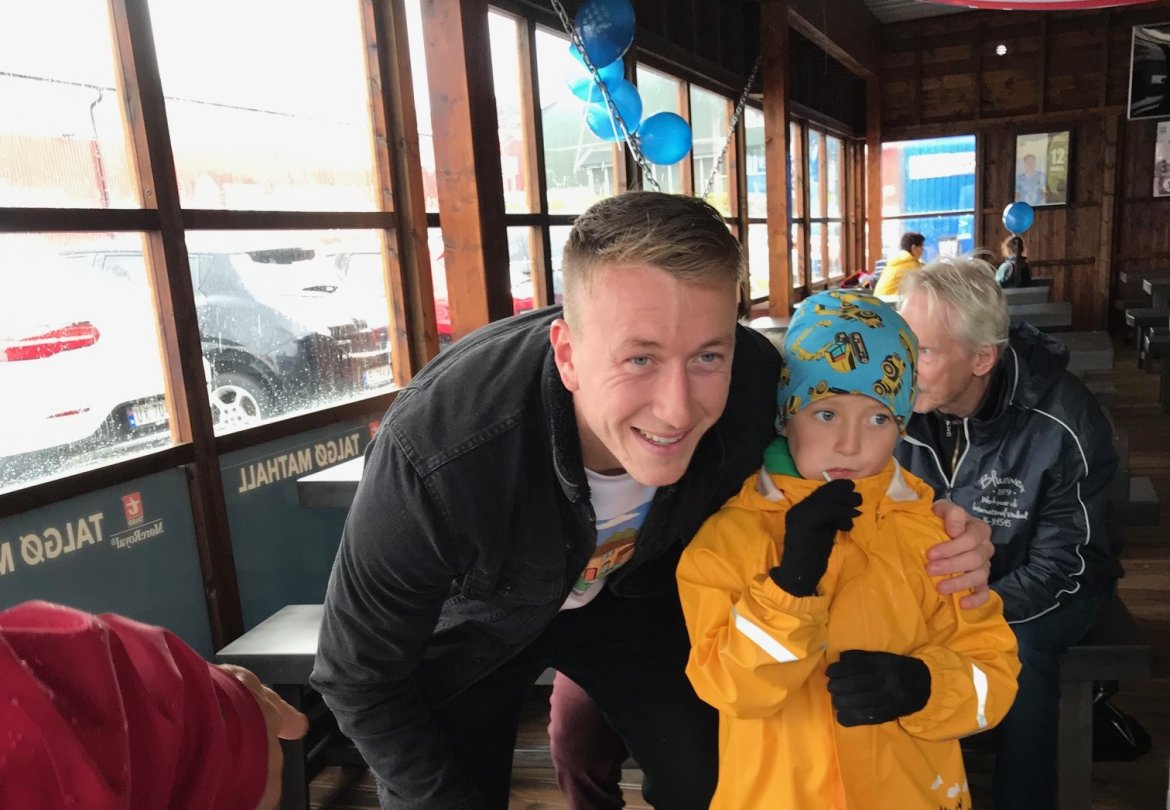 KBK sitt A-lag, som hadde trening før rebusløpet, kom opp for å ta bilder og skrive autografer til de mange unge lovende som hadde møtt opp for å delta.