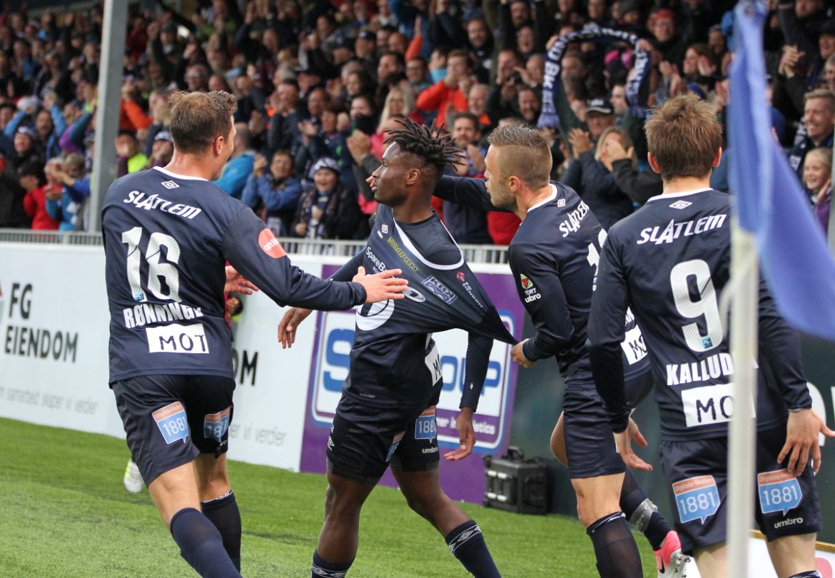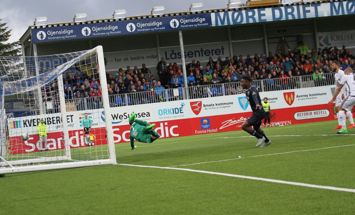3-2 og Kristiansund stadion bryter ut i fullstendig kaos. Folk hyler, jubler og gråter om hverandre på tribunene. Et magisk øyeblikk som ikke blir glemt med det første på Nordmøre.
