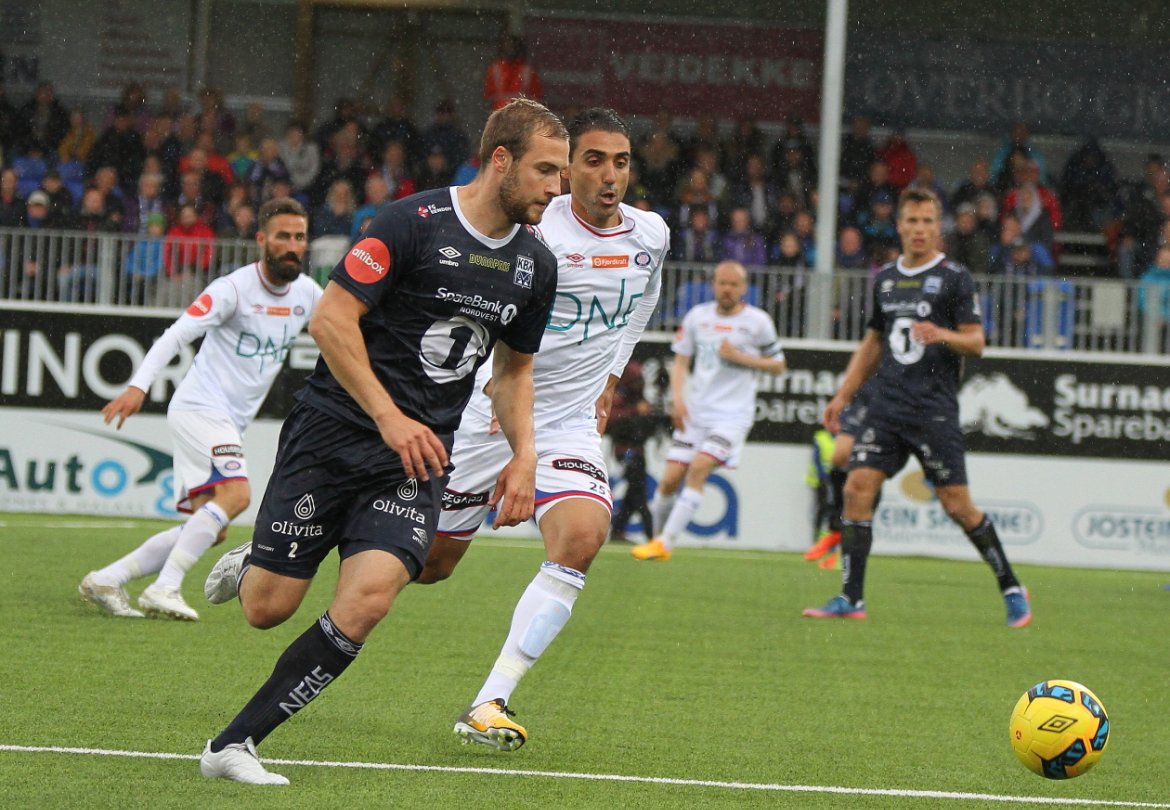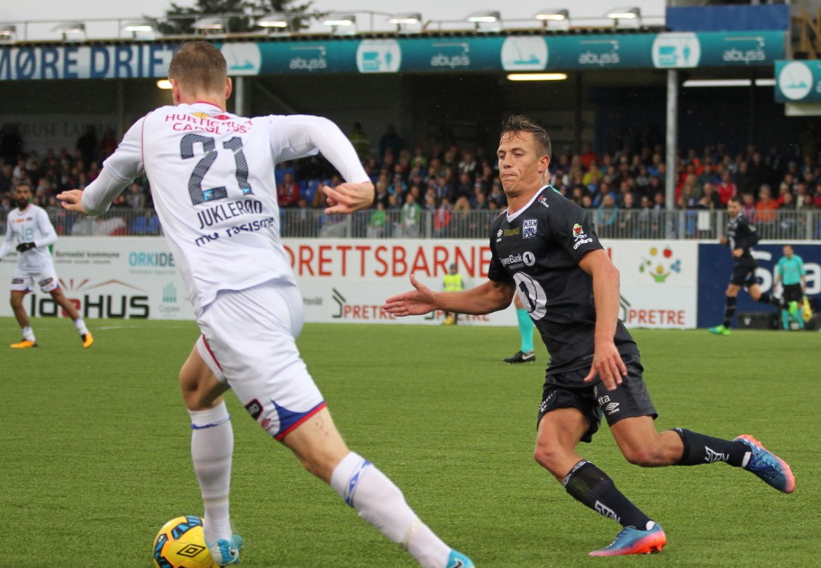 Kampen startet tett og jevnt på Kristiansund stadion, som forøvrig ble spilt foran 4050 tilskuere i friskt og lett regnvær.