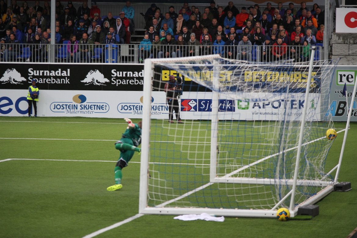 Christoffer Aasbak skritter selvsikkert opp for å ta frisparket, og curler deretter ballen vakkert i lengste hjørne. Klassescoring, og 1-0 til KBK. Scoringen var forøvrig venstrebackens første i Eliteserien. Vi gratulerer!