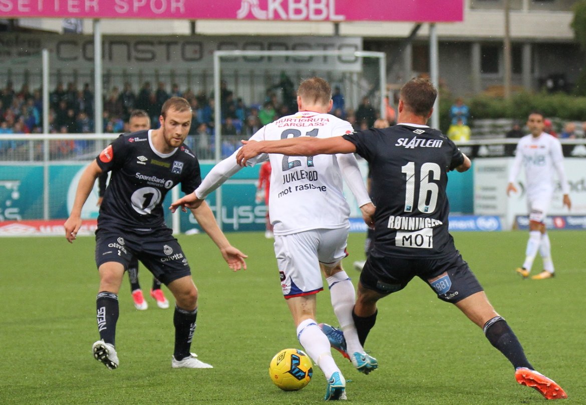 KBK kjemper seg kjapt inn i kampen, og er hissige på kontringer mot et Vålerenga-lag som står offensivt og høyt i banen. Etter en drøy halvtime utnytter KBK dette, og det blir høylytt på Kristiansund stadion. KBK kontrer og Rønningen jager et langt oppspill. Eliteseriens kjekkeste kommer først på ballen, og blir tatt av keeper Marcus Sandberg rett utenfor 16-meteren som bakerste mann. Hele stadion roper på rødt kort, men dommer Dag Vidar Hafsås lander på frispark og gult kort. En god avgjørelse sett i ettertid.