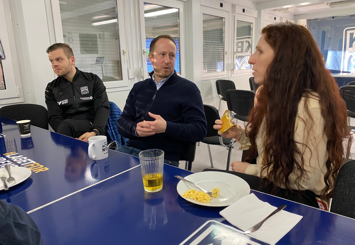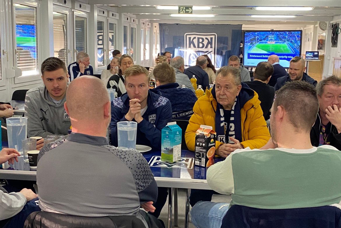 Klaveness sitt klubbesøk startet med frokost sammen med spillere, trenere og støtteapparat i KBK Gatelag i Møre Drift VIP. Det ble glade og varme samtaler med fotballens store og høyt respekterte leder.