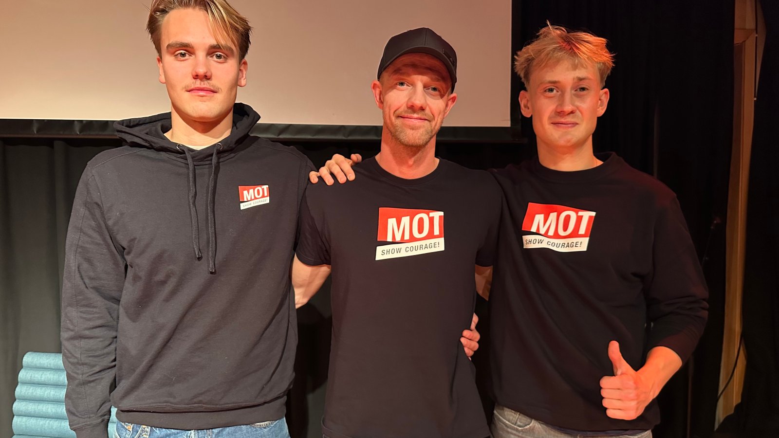 MOT gjør en fantastisk innsats for barn og unge, og vi bidrar med å få oppmerksomhet rundt MOT og deres budskap. Blant annet er vi med på skolebesøk. MOT er også til stede på mange av våre arrangementer.